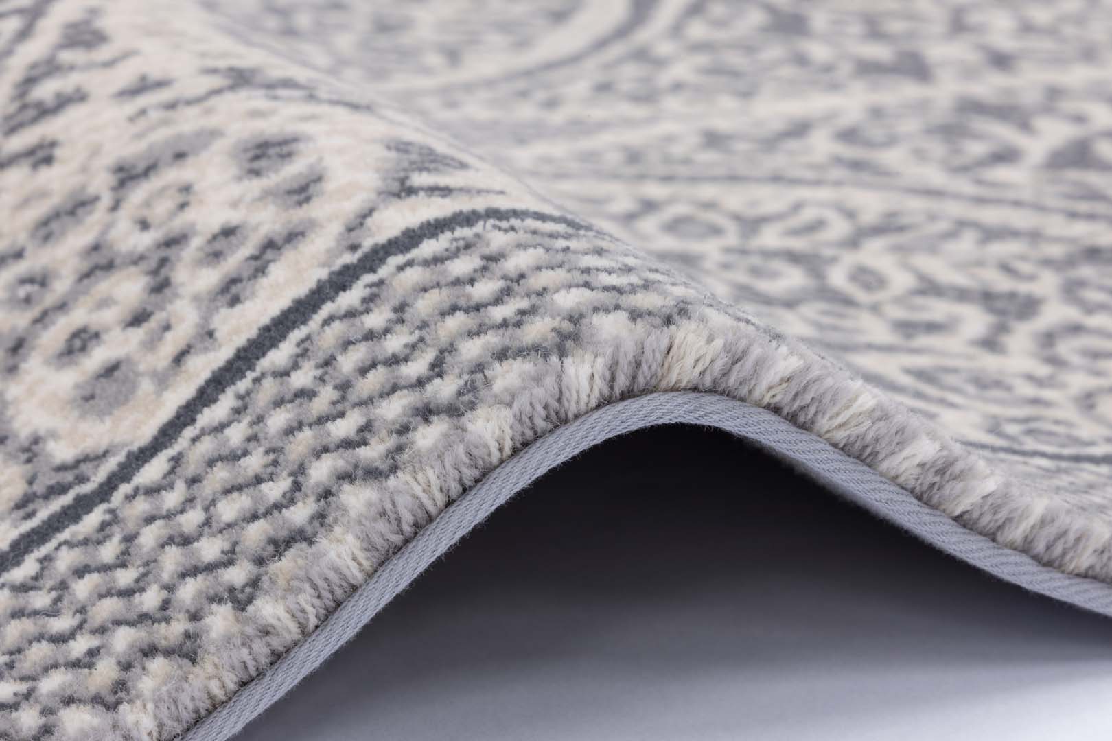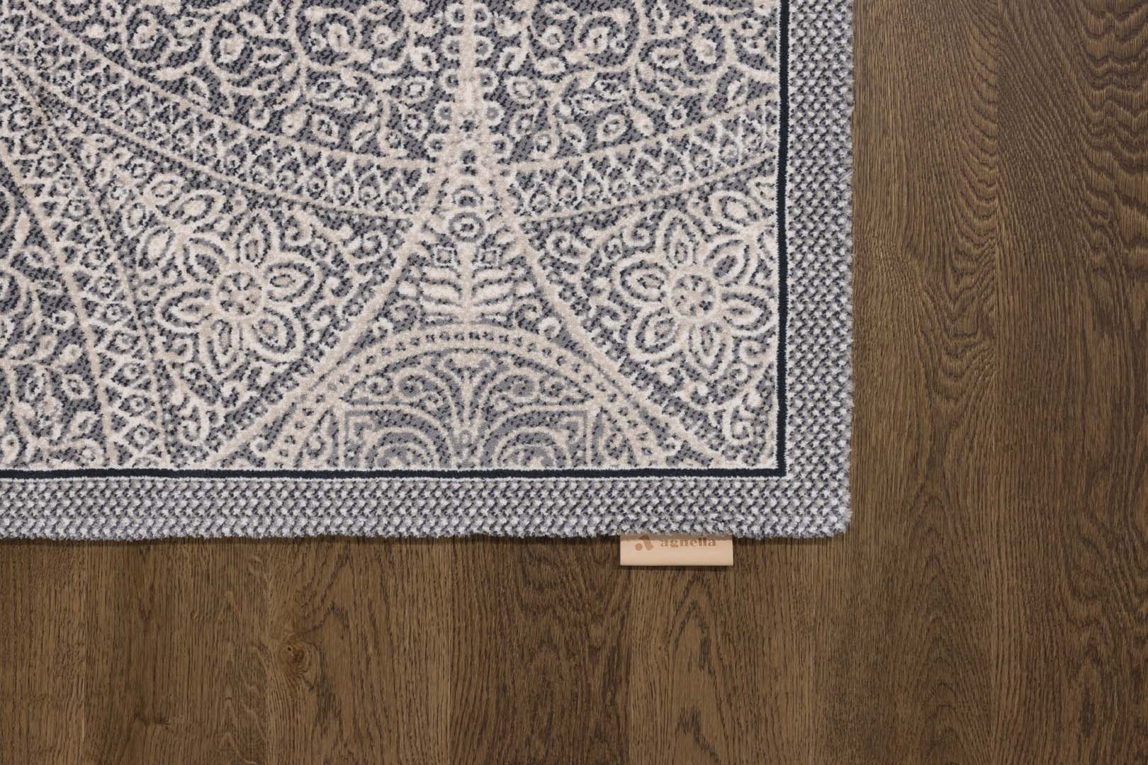 Arabeski pokrywające płaszczyznę dywanu Aurora to niezwykle precyzyjnie opracowany ornament przywodzący na myśl dzieła dawnych mistrzów. Arabeski, znane od starożytności, szczególnie popularne stały się w sztuce islamu, w renesansie i klasycyzmie. Stylizowane motywy roślinne widoczne na dywanie, to wijące się kwiaty, liście oraz gałązki ułożone na przenikających się kołach. Niezwykle oryginalna kolorystyka utrzymana w palecie beży i szarości sprawi, że dywan będzie wspaniałym i oryginalnym dodatkiem wnętrz klasycznych, jak również utrzymanych w bardziej nowoczesnym stylu.